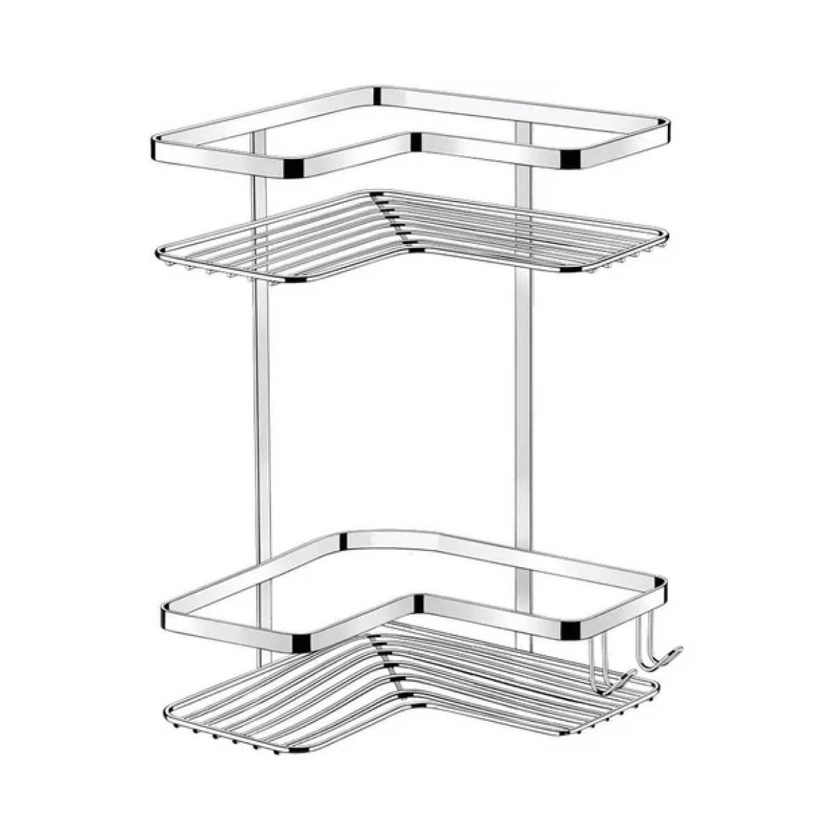 Suporte Porta Shampoo de canto duplo marca Future modelo 1103 | É fabricada em Aço piatina Cromado e possui uma camada extra de um protetivo especial Rust Free que resulta em uma resistência maior contra ferrugem. |