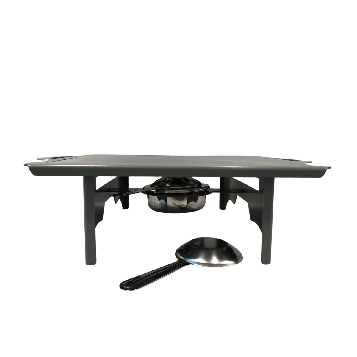 Rechaud Retangular cinza 37cm x 27cm cinza base cromada chapa alumínio queimador aço inox Ravinox