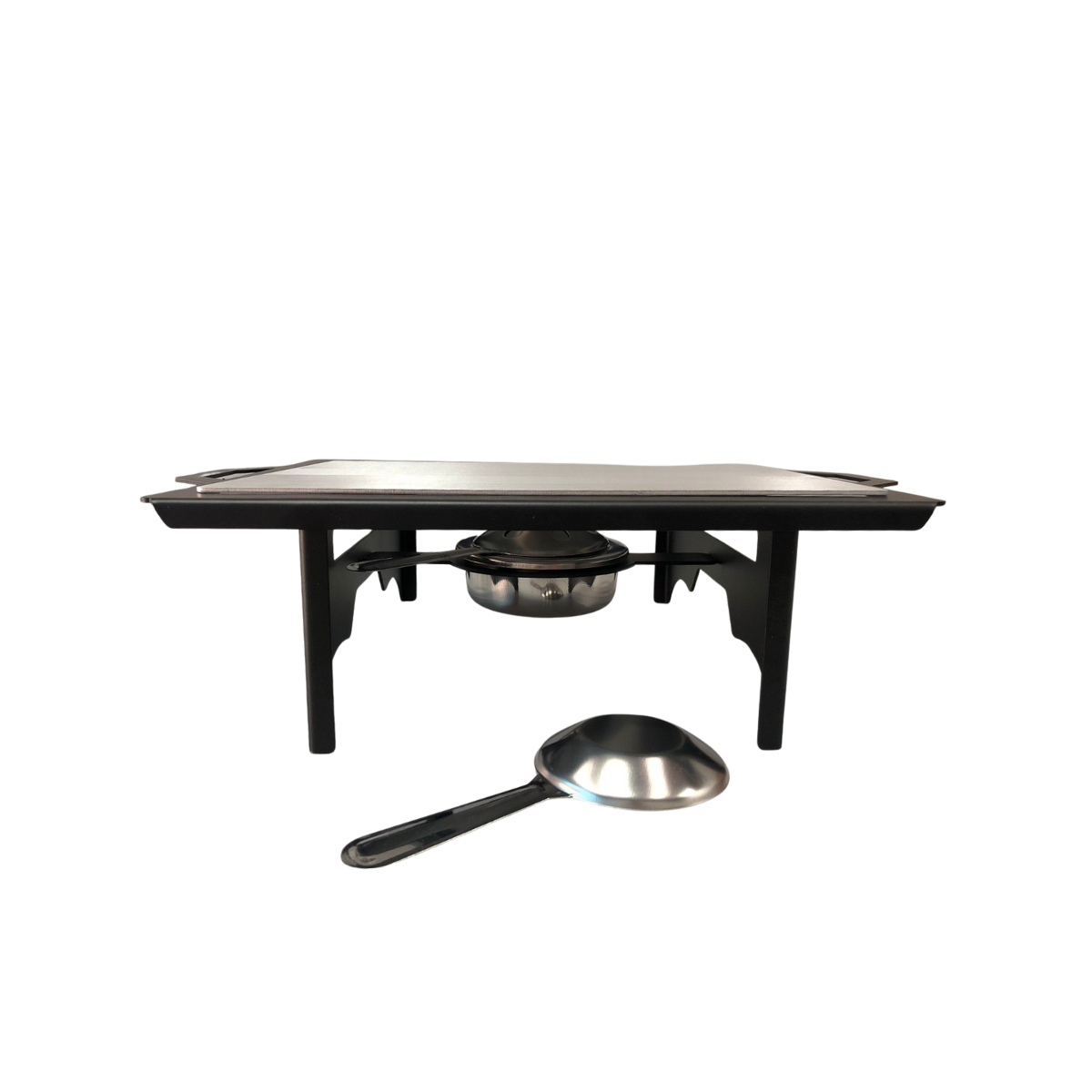 Rechaud Retangular preto37cm x 27cm base cromada chapa alumínio queimador aço inox Ravinox